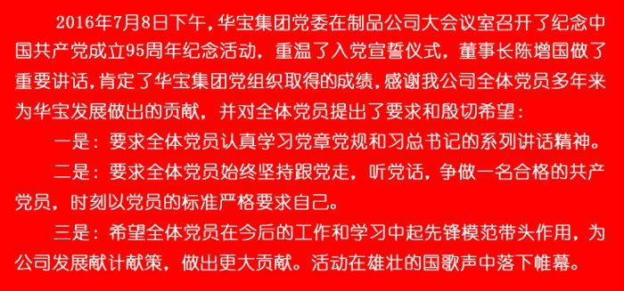 華寶集團黨委召開了紀念中國共產黨成立95周年活動
